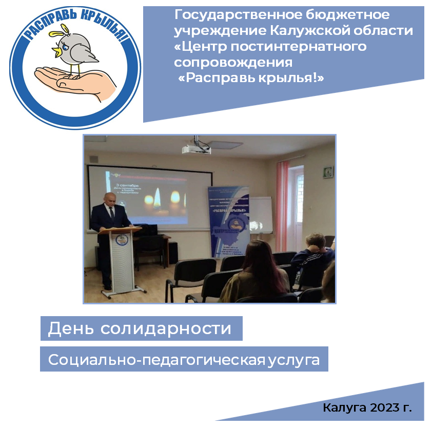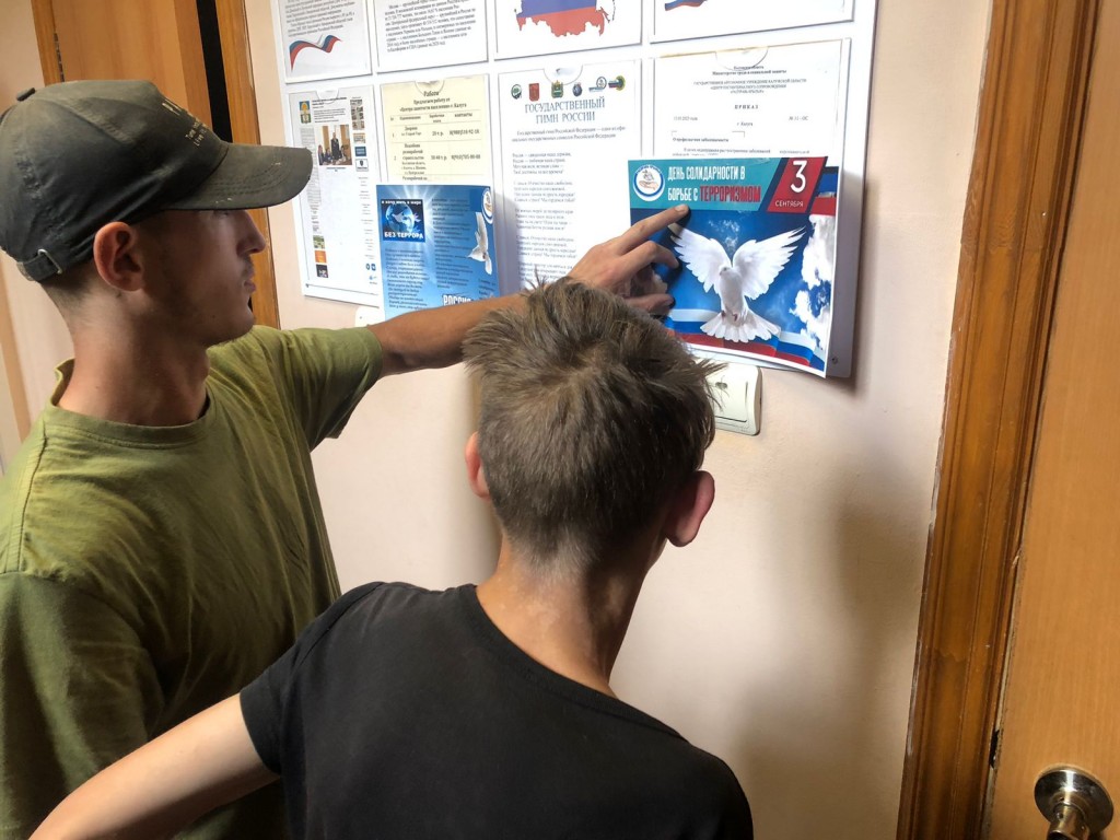 Для проживающих в социальной гостинице «Центра «Расправь крылья!» проводятся занятия по антитеррористическому просвещению «Россия в авангарде борьбы с терроризмом». Размещаются буклеты и информационные листки.