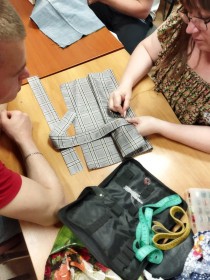 10. Осваивали крой изделия из синтетических тканей ,работу с утюжкой и сбор деталей .почти готовое изделие .Сумка для похода в магазин за продуктами:))))