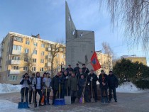 Впреддверие этой памятной даты, КРО «Боевое Братство», совместно со студентами споу из числа детей-сирот, клуб выпускников «Вместе», проживающих в социально тренировочных квартирах и активистками НКО «Перекрёсток» организовали субботник у памятника Журавли.