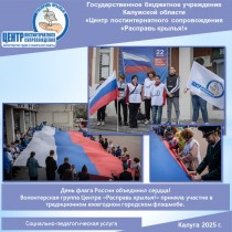 Сегодня наша страна отмечает День флага России. И мы, волонтерская команда Центра "Расправь крылья!", не могли остаться в стороне от этого важного события. Наши выпускники из числа сирот, проживающие в социальной гостинице, вместе со своими наставниками с гордостью приняли участие в традиционном ежегодном флэшмобе, организованном партией "Единая Россия"... - Сегодня наша страна отмечает День флага России. И мы, волонтерская команда Центра "Расправь крылья!", не могли остаться в стороне от этого важного события. Наши выпускники из числа сирот, проживающие в социальной гостинице, вместе со своими наставниками с гордостью приняли участие в традиционном ежегодном флэшмобе, организованном партией "Единая Россия"...