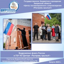 21.08.202522 августа мы отмечаем один из главных государственных праздников — День Государственного флага Российской Федерации. В преддверии этой даты по всей стране стартовала акция «Окна России 2025», цель которой заключается в выражении гражданской позиции, патриотизма и любви к Родине. В целях гражданско-патриотического воспитания молодежи, рамках проекта «Я служу России!» наш Центр также принял участие в данной акции. Выпускники нашей категории, проживающие в социальной гостинице Центра, под руководством сотрудников отделения КПиСС эксперта Нестюркиной Н.Н., специалиста по социальной работе Ефименко Н.А. украсили окна здания Центра «Расправь крылья!» своими рисунками, посвященными празднованию Государственного флага Российской Федерации...