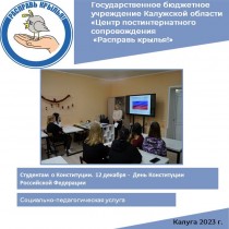 Для студентов нашей категории из ГАПОУ КО «Калужский колледж сервиса и дизайна» была проведена лекция на тему «12 декабря – День конституции РФ» которую подготовили и провели юрист нашего Центра «Расправь крылья!» Ульяна Нестерова... - Для студентов нашей категории из ГАПОУ КО «Калужский колледж сервиса и дизайна» была проведена лекция на тему «12 декабря – День конституции РФ» которую подготовили и провели юрист нашего Центра «Расправь крылья!» Ульяна Нестерова...