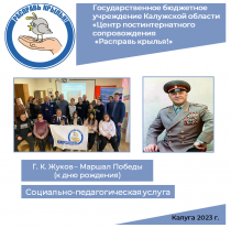 1 декабря – День рождения Маршала Победы Г.К. Жукова.Проект: «Я Служу России!» Лекторская группа " Расправь крылья", состоящая из проживающих нашей социальной гостиницы и студентов образовательных учреждений, подготовили презентацию и провели лекцию на тему: «Г.К. Жуков от скорняка до Маршала Победы», к 127 годовщине со дня рождения, четырежды Героя, Маршала Советского союза Георгия Константиновича Жукова... -