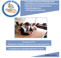 В рамках выполнения государственного задания по сопровождению лиц из числа детей-сирот и детей, оставшихся без попечения родителей, сотрудниками Центра «Расправь крылья!», был совершён выезд в ГБПОУ «Калужский колледж экономики и технологий» на площадке ул. Новослободская д.25. -