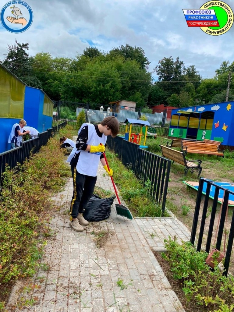 оказали посильную помощь детскому дошкольному учреждению «Анютины глазки». Приняли участие в уборке территории детского сада. Ребята потрудились на славу. Работы хватило всем!