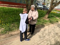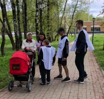 В творческой мастерской, ребята изготовили ленточки, материал про героев калужан и вручали прохожим ленточки сопровождая рассказом про знаменитых калужан, героях Великой Отечественной войны.