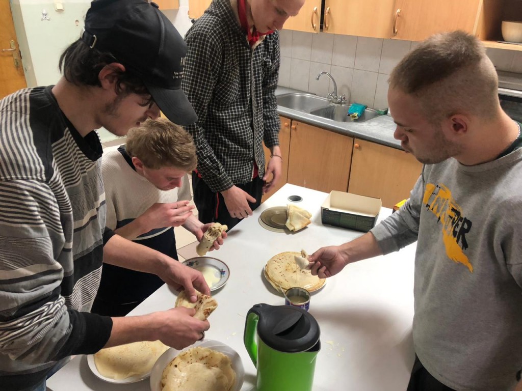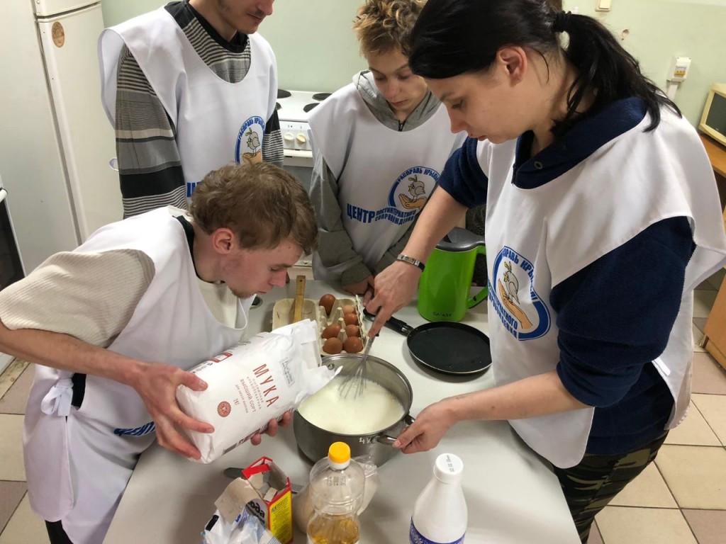Специалисты Центра постинтернатного сопровождения «Расправь крылья!», в рамках выполнения государственного задания по оказанию социальных бытовых услуг, в рамках проекта «Я служу России!» и образовательной программы «Воспитываем гражданина» совместно с проживающими в отделении социальной гостиницы центра, провели мастер-класс по приготовлению блинов.