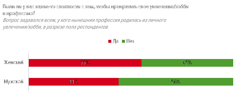 Интересно, что превратить хобби в профессию чаще получается у мужчин, чем у женщин (27% против 15%), если судить по результатам опроса.