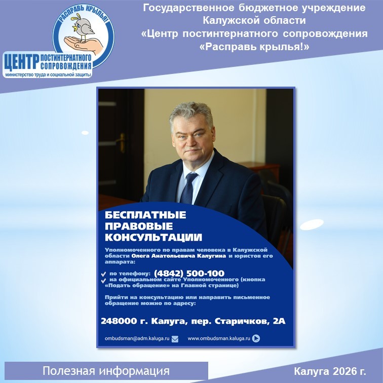 Прийти на консультацию или направить письменное обращение можно по адресу: 248000; г.Калуга, пер. Старичков, 2А, тел. 8/4842/500-100. Переходите на канал в МАХ: https://max.ru/id4027061745_gos/AZ1I5E43dYc