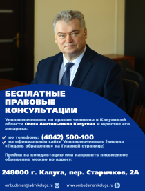 Уполномоченный по правам человека в Калужской области Олег Анатольевич Калугин и сотрудники его аппарата действуют в рамках Закона Калужской области "Об Уполномоченном по правам человека в Калужской области".