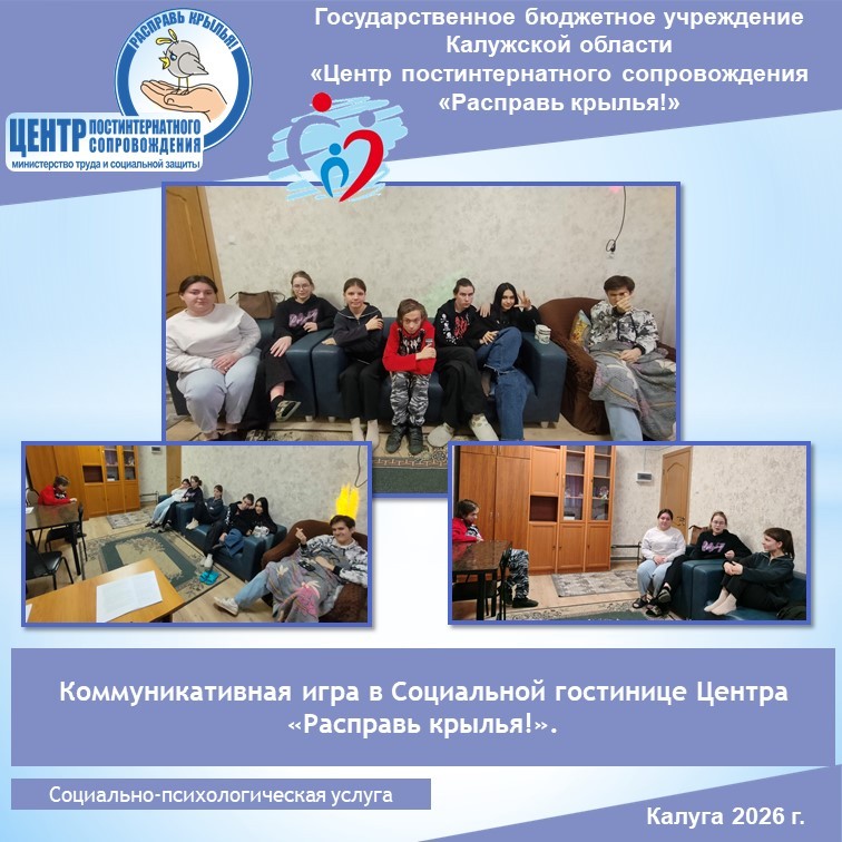 В Социальной гостинице нашего Центра «Расправь крылья!» недавно прошла увлекательная коммуникативная игра, организованная психологом Центра Крутовой Е.А. Это мероприятие стало важным шагом на пути к развитию навыков эффективного общения и укреплению дружеских связей между проживающими.