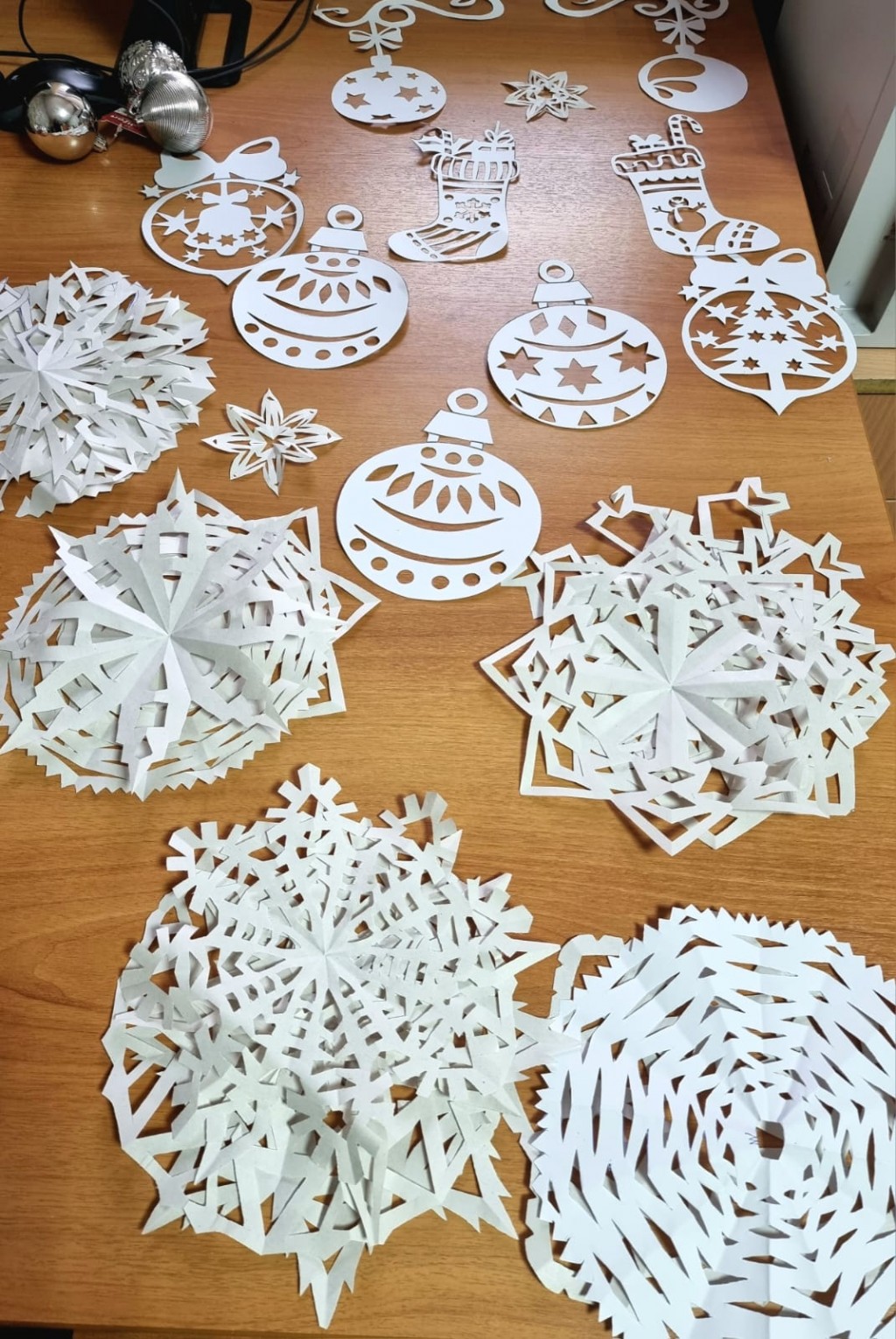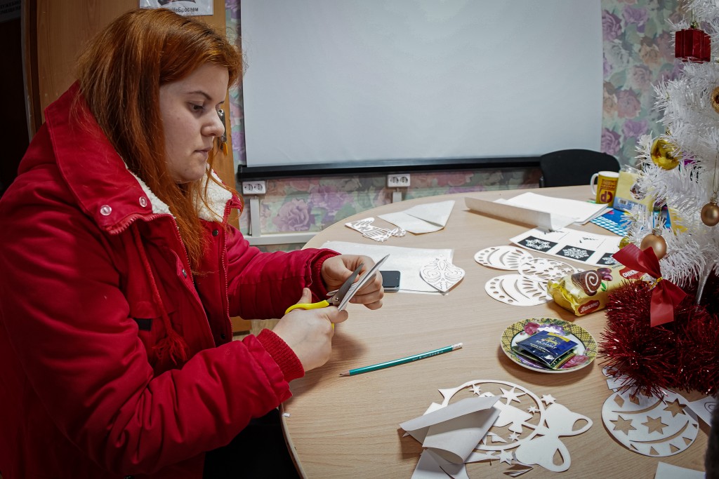 В процессе изготовления украшений специалистами проведено занятие об истории празднования Нового года, о традициях и обычаях этого праздника. Вырезание из бумаги является одним из видов декоративно-прикладного искусства, имеет глубокие традиции и тысячелетнюю историю. Искусство вырезки родилось в народе. Люди начали украшать свои комнаты травами, рушниками и вырезками. Стараясь наполнить радостью свой дом, его украшали дважды – на Рождество и Пасху. Вырезали и украшали комнату или окна дома. На Рождество или Пасху это были ангелочки, их клеили на окна или домашний иконостас. По вырезкам можно было определять, кто женится, а у кого родился ребёнок – всё отражалось в праздничных украшениях на окнах.