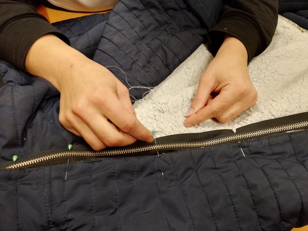 2) Отремонтировать демисезонную куртку вручную (рукав и карман).