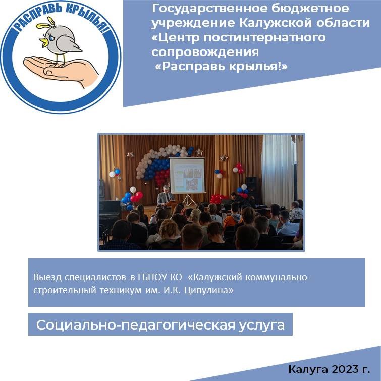 В рамках выполнения государственного задания по оказанию социальных услуг был организован выезд в Калужский коммунально-строительный техникум им. И.К. Ципулина.