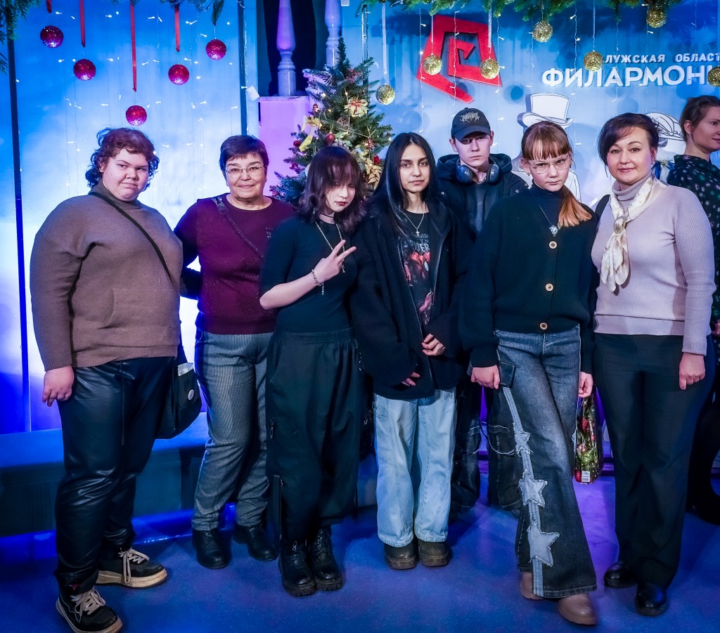 В разгар новогодних каникул студенты СПОУ и проживающие в социальной гостинице ребята вместе с наставниками Глущуком О.А., Кузнецовой С.А. и Ивкиной Н.В. посетили праздничный новогодний концерт в Калужской областной филармонии.