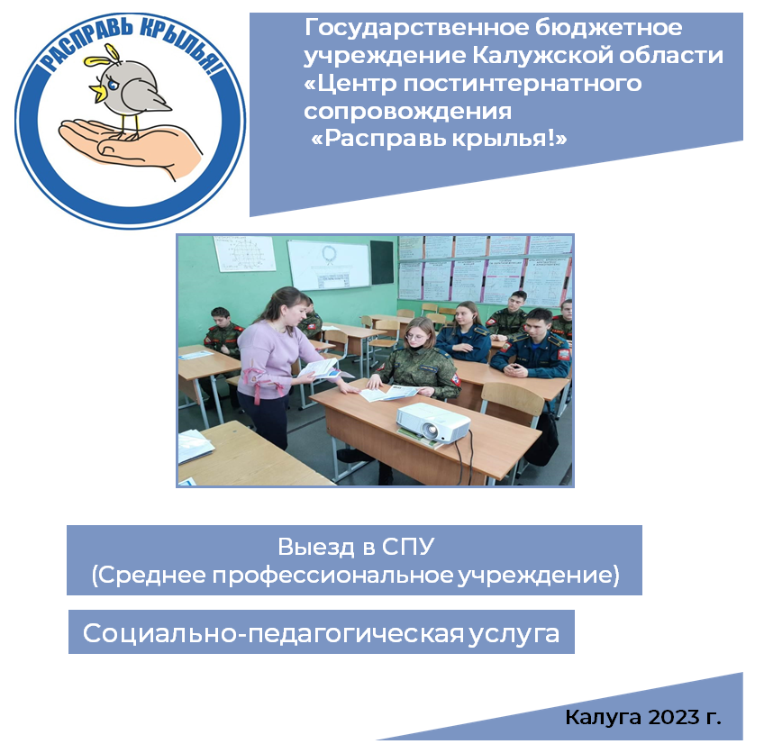 В рамках выполнения государственного задания, специалисты Центра «Расправь крылья!» под руководством заведующего отделением комплексной помощи Глущука О.А. посетили ГБПОУ КО «Перемышльский техникум эксплуатации транспорта».