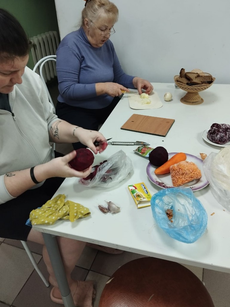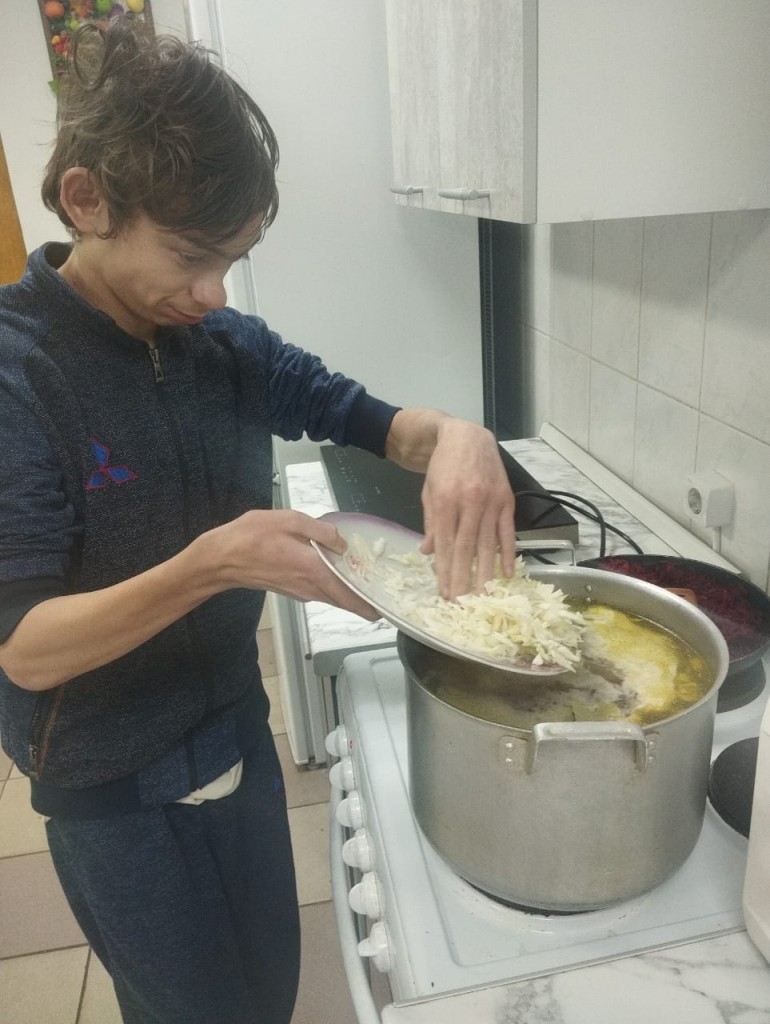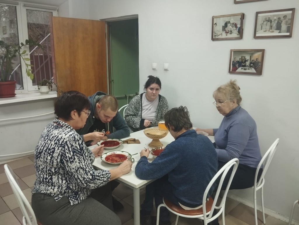 В кулинарной студии «Расправь крылья!» состоялся очередной мастер-класс, в котором приняли участие ребята из числа детей-сирот, проживающие в социальной гостинице. Под руководством наставников Ивкиной Н.В. и Старцевой Г.В. они готовили одно из самых известных и любимых блюд — борщ.