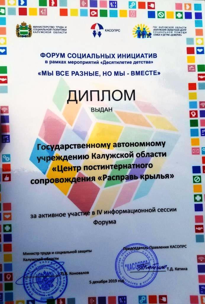 5 декабря в Кондровском центре содействия семейному воспитанию «Берега» состоялся 4-й областной форум социальных инициатив «Мы разные, но мы вместе». Форум собрал более 70 участников - руководителей и представителей министерства труда и социальной защиты, НКО, администраций районов и социальных учреждений области. Наш Центр «Расправь крылья!» на форуме представлял заместитель директора Иван Головид с проектом « Я служу России!». Были представлены лучшие проекты социальных учреждений, « Цифровой куратор», « Игровые формы в социальной работе» и др. В финале мероприятия победители и участники получили награды! Изучен опыт учебно-тренировочных квартир. В завершении форума, участники посетили музей бумажной фабрики « Бузеон».