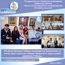 В Калуге прошел концерт, посвященный памяти освобождения Калужской земли от захватчиков. Калужский дом музыки представил программу "Дневники Победы", которую посетили наши выпускники из числа сирот и детей, оставшихся без попечения родителей. Их сопровождали наставники: заведующий отделением КПиСС Глущук О.А. и эксперт Кузнецова С.А... - В Калуге прошел концерт, посвященный памяти освобождения Калужской земли от захватчиков. Калужский дом музыки представил программу "Дневники Победы", которую посетили наши выпускники из числа сирот и детей, оставшихся без попечения родителей. Их сопровождали наставники: заведующий отделением КПиСС Глущук О.А. и эксперт Кузнецова С.А...