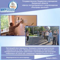 В рамках выполнения профилактических мероприятий в ГБУ КО ЦПС «Расправь крылья!» ответственным Зотовой Е.Б. организовано и проведено плановое практическое занятие на тему: "Проведение тренировок по безопасной и своевременной эвакуации сотрудников Центра и проживающих в социальной гостинице при получении информации об угрозе при совершении террористического акта» для сотрудников учреждения и проживающих в социальной гостинице... - В рамках выполнения профилактических мероприятий в ГБУ КО ЦПС «Расправь крылья!» ответственным Зотовой Е.Б. организовано и проведено плановое практическое занятие на тему: "Проведение тренировок по безопасной и своевременной эвакуации сотрудников Центра и проживающих в социальной гостинице при получении информации об угрозе при совершении террористического акта» для сотрудников учреждения и проживающих в социальной гостинице...