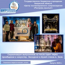 В рамках оказания выпускникам из числа сирот и детей, оставшихся без попечения родителей, социально-педагогических услуг, направленных на приобщение их к духовно-нравственным ценностям, культуре и традициям России, сотрудники ОКПиСС Глущук О.А., Кузнецова С.А. организовали для наших выпускников обзорную экскурсию по выставочным залам Городского досугового центра, где выпускники смогли погрузиться в богатую историю великих побед, подвига на фронте и в тылу наших земляков... - В рамках оказания выпускникам из числа сирот и детей, оставшихся без попечения родителей, социально-педагогических услуг, направленных на приобщение их к духовно-нравственным ценностям, культуре и традициям России, сотрудники ОКПиСС Глущук О.А., Кузнецова С.А. организовали для наших выпускников обзорную экскурсию по выставочным залам Городского досугового центра, где выпускники смогли погрузиться в богатую историю великих побед, подвига на фронте и в тылу наших земляков...