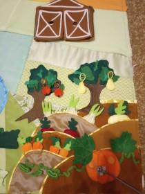 На нашем коврике запланировано несколько зон: огород, ферма, луг, лес, джунгли, горы и море.