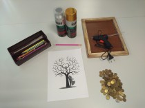 Для создания картины понадобится: картон, монеты, спрей-краски, эскиз картины, карандаш, рамка для фотографий, термопистолет. Вот так, копеечка к копеечке, создаются настоящие сувениры из монет. И стоят они вовсе не столько, сколько монет на них прикреплено. Их художественная стоимость намного дороже, чем совокупный номинал отдельных составляющих, поскольку бесценность авторской идеи, и сама работа просто ни с чем несравнимы.