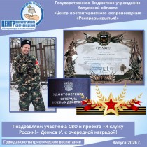 Начинаем новый год с радостных новостей! С гордостью сообщаем, что участник СВО, наш выпускник из числа сирот, и казак Денис У. вновь отмечен очередной наградой! Войсковая десантная часть, где служит Денис, отметила его заслуги перед Отечеством Грамотой «За особые личные заслуги, высокую профессиональную выучку, усердие и отличие по службе, проявленные в служебной и боевой деятельности!»... - Начинаем новый год с радостных новостей! С гордостью сообщаем, что участник СВО, наш выпускник из числа сирот, и казак Денис У. вновь отмечен очередной наградой! Войсковая десантная часть, где служит Денис, отметила его заслуги перед Отечеством Грамотой «За особые личные заслуги, высокую профессиональную выучку, усердие и отличие по службе, проявленные в служебной и боевой деятельности!»...