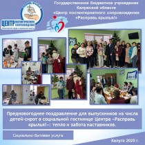 В преддверии Нового года, самого волшебного праздника, сотрудники Центра «Расправь крылья!» и наставники Крутова Е.А., Степушкин А.А., Кузнецова С.А., Перелыгин В.В., Филимонов В.Ф., Ивкина Н.В., Старцева Г.И. организовали для выпускников из числа детей-сирот предновогоднее поздравление, наполненное радостью, теплом и искренними эмоциями. Местом проведения праздника стала уютная социальная гостиница Центра, где собрались выпускники - студенты СПОУ и ребята, проживающие в Центре... - В преддверии Нового года, самого волшебного праздника, сотрудники Центра «Расправь крылья!» и наставники Крутова Е.А., Степушкин А.А., Кузнецова С.А., Перелыгин В.В., Филимонов В.Ф., Ивкина Н.В., Старцева Г.И. организовали для выпускников из числа детей-сирот предновогоднее поздравление, наполненное радостью, теплом и искренними эмоциями. Местом проведения праздника стала уютная социальная гостиница Центра, где собрались выпускники - студенты СПОУ и ребята, проживающие в Центре...
