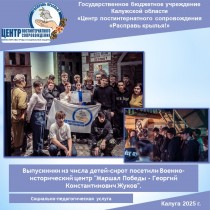 Воспитание настоящего гражданина своей страны – неотъемлемая часть процесса успешной социализации выпускников нашей категории. В рамках программы «Воспитываем гражданина» и проекта «Я служу России!», а также в связи с памятной датой Калужской области - 129-летней годовщины со дня рождения Маршала Советского Союза, четырежды Героя Советского Союза Георгия Константиновича Жукова, Центр «Расправь крылья!» организовал для студентов СПОУ и проживающих в социальной гостинице посещение экскурсии в Военно-историческом центре Маршала Победы – «Георгий Константинович Жуков» г. Калуга.