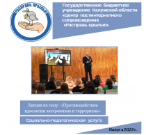 Специалисты Центра «Расправь крылья!», провели мероприятие на тему: «Противодействие идеологии экстремизма и терроризма», в  «Калужском  колледже сервиса и дизайна», по вовлечению молодежи (в том числе детей-сирот), в систему патриотического воспитания и выполнения государственного задания.