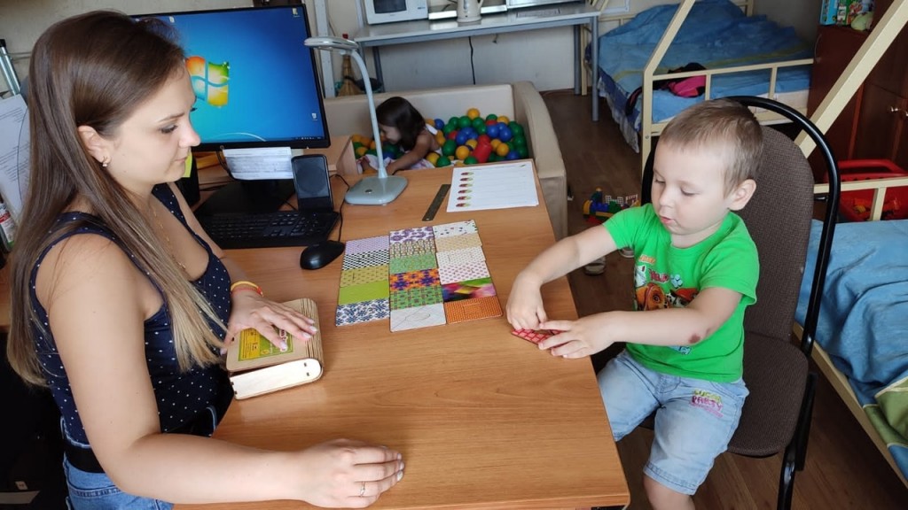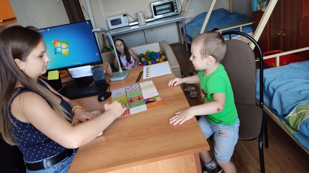 Психолог проводит занятия с маленькими воспитанниками центра и по выходным дням.