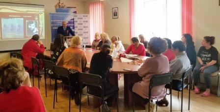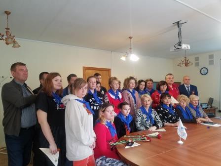 Директор Центра Владимир Гоголев и заместитель директора по территориальному сопровождению Иван Головид поздравили всех с наступающим праздником – Днем Победы и вручили сотрудникам Центра и проживающим в социальной гостинице синий платочек, Георгиевскую ленточку и гвоздику.