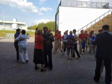 Главным событием первого дня акции «Синий платочек» стал совместный вальс подростков из числа детей-сирот, детей, оставшихся без попечения родителей, и женщин-ветеранов, женщин-узников фашистских концлагерей.