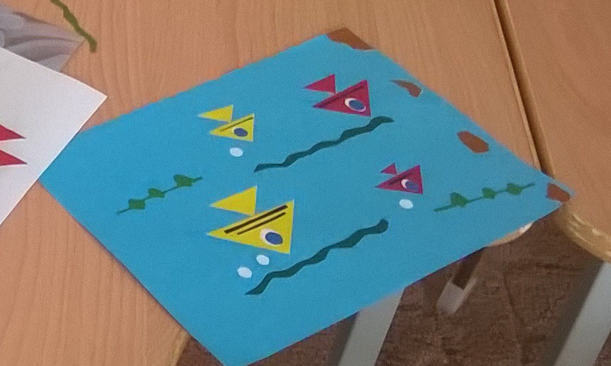 27 июня состоялось очередное занятие школы для мам с детьми. Максимка Ломакин вместе с мамой Олесей пытался сделать свой аквариум со своими рыбками очень необычным способом – из готовых треугольников разного размера и цвета. Сначала он очень внимательно рассматривал фотографии с аквариумными рыбками. Заметил, что все они разного цвета.