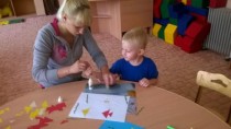 Затем вместе с учителем и мамой сыграл в пальчиковую игру «Зайчики». Максимка с каждым занятием становится все более усидчивей, и это очень радует его маму.