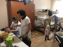 Первым делом они приготовили наваристый куриный бульон. Пока одна воспитанница центра чистила овощи, другая терла на терке и подготавливала их к обжарке. В готовый бульон добавили картошку, чуть позже спустя 15- 20 мин обжарку из овощей и пол столовых ложки уксуса. Практически все мастер - классы не обходятся без самых маленьких жителей нашего центра. Не стал исключением и данный мастер - класс. Малыши пристально наблюдали за тем, как их мамы готовили ароматный, наваристый борщ. При подаче девушки добавили зелень и сметану, тем самым добавив пикантности и пользы данному национальному украинскому блюду. На мастер - классе воспитанницы поняли, что ощущение уюта и домашнего тепла рождается благодаря ароматной, вкусной, здоровой, домашней пище.
