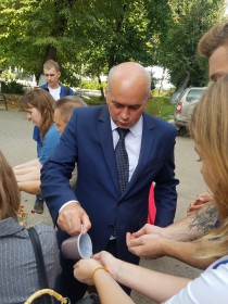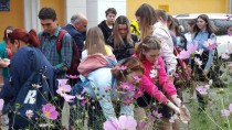 В память жертв Беслана, которые все три дня, находясь в заточении, не могли выпить ни капли воды, мы вместе с ребятами набрали в ладони воду и с пожеланием светлой памяти всем безвинно погибшим, напоили цветы, растущие на клумбе, тем самым почтив память жертв бесланской школы №1.