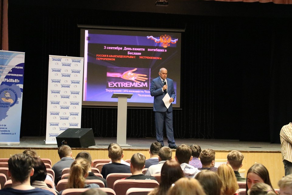 05.09.2018 года в ГБУ КО «Областной молодежный центр» прошло мероприятие «Беслан. Скорбим», посвященное международному Дню солидарности в борьбе с терроризмом и приуроченное к Всероссийской акции «Капля жизни». Лекторская группа ГАУ КО «Центр постинтернатного сопровождения «Расправь крылья!» в составе заместителя директора по территориальному сопровождению Головида И.И. и заместителя директора по общим вопросам Серегиной М.А. рассказала студентам учреждений СПО (в том числе из числа детей-сирот) о трагических событиях, произошедших в первые сентябрьские дни 2004 года в городе Беслане.
