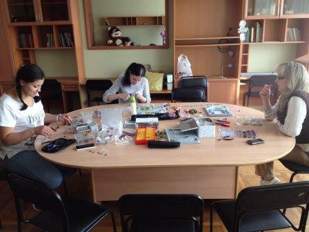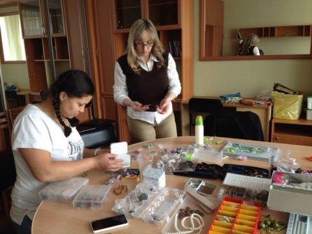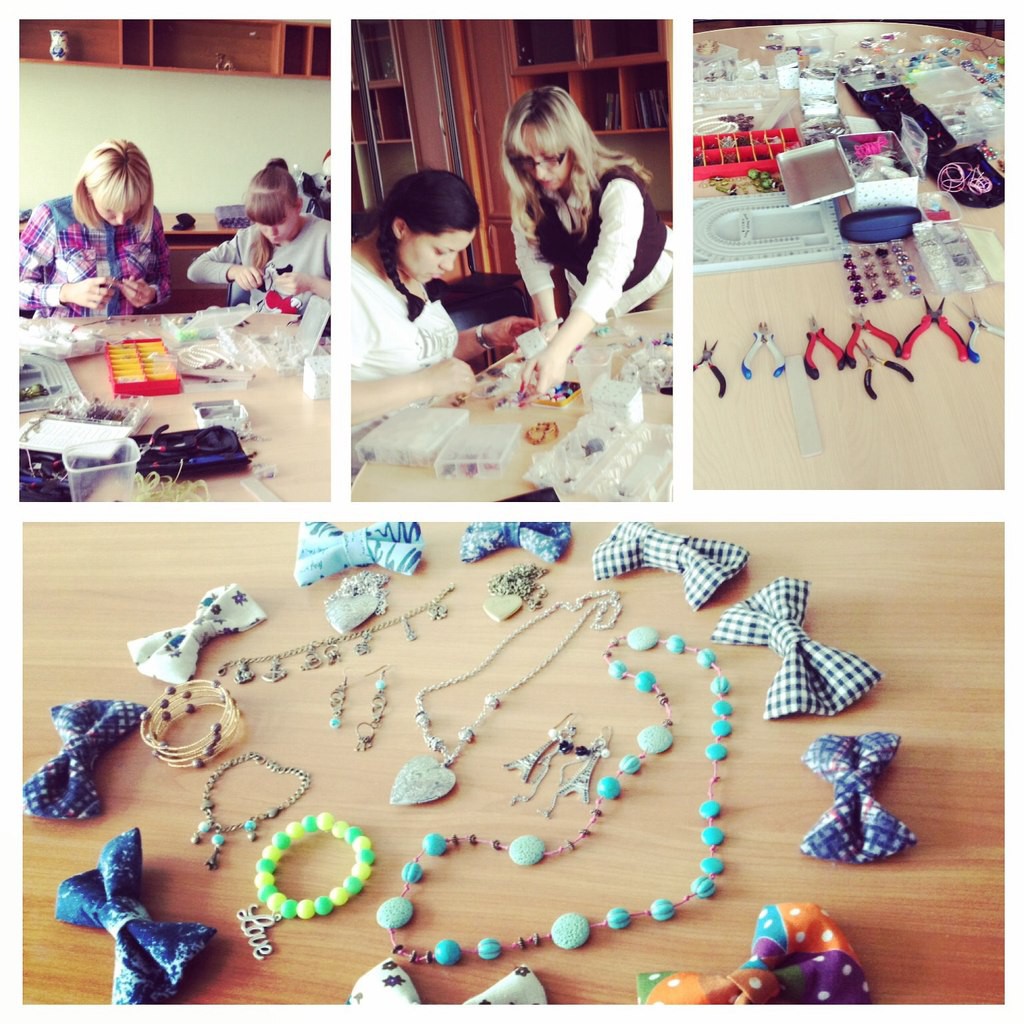 30 апреля 2015 года мы встретились на традиционном мастер - классе по изготовлению украшений ручной работы. Девушки учились мастерить бусы 3 видов. Обилие вариантов бусинок давало простор фантазии участницам проекта. Каждая из них сделала бусы по личному дизайну. Бонусом данного занятия стало изготовление галстука – бабочки без единого шва, столь популярного и модного аксессуара в этом сезоне. Более трех часов продолжалась наша встреча, но расходиться не хотелось, поскольку рукоделие и творчество – это очень увлекательный процесс!