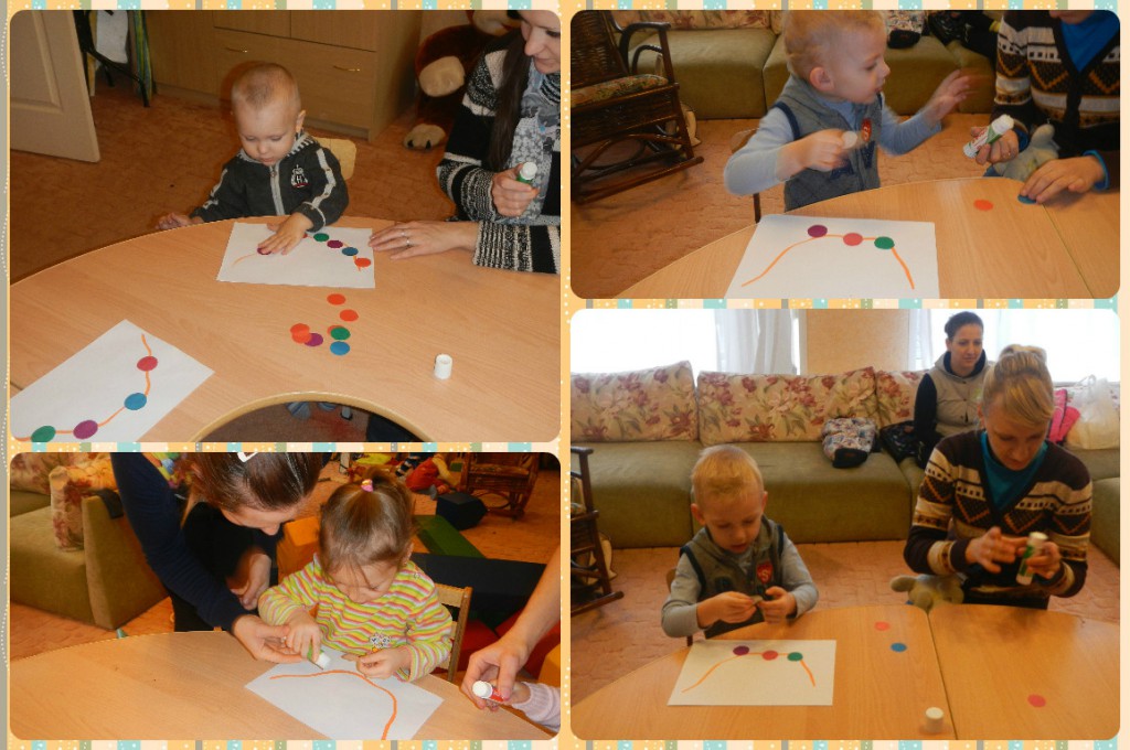 Старались все: Артемка Дашин, Ксюша Корякина, Максимка Ломакин, Валерка Гладкой, Полина Дашина. Все свои поделки дети забирают с собой. У них уже получилось целое портфолио. Мамы и дети очень довольны, что они посещают наши занятия, и очень расстраиваются, когда их не бывает.