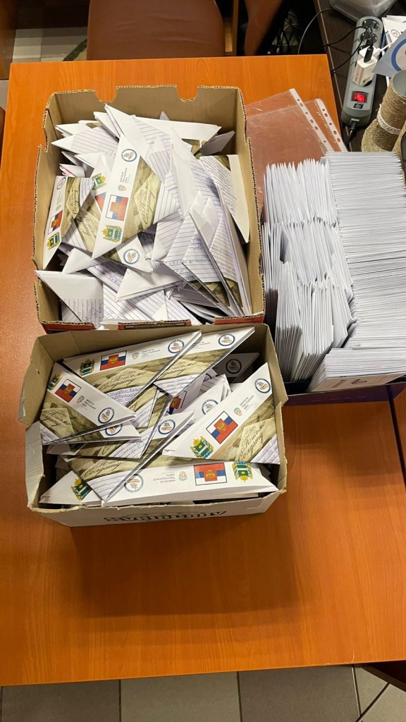 13.03.2022 в 7.00 утра руководитель центра Гоголев Владимир Юрьевич и сотрудники центра "Расправь крылья", директор НКО "Перекресток" Хорошилов Алексей Юрьевич, волонтёры клуба выпускников Вместе, лекторская группа "ВРЕМЯ", добровольцы из числа детей сирот, выезжают с письмами: