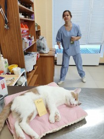 Огромное спасибо доктору ветеринарной клиники *Феникс* Татьяне Александровне! Помогает бездомным животным, ухаживает, лечит и сегодня помогла нам! Наши подопечные из числа детей-сирот находят бездомных кошек, жалеют их, кормят, дают им временный приют! При этом директор Цента постинтернатного сопровождения «Расправь крылья!»Владимир Юрьевич Гоголев принимает активное участие в дальшей судьбе наших четвероногих друзей. Специалисты центра, клуб выпускников *Вместе *, волонтёры приобретают питание, обеспечивают лечение, находят новых хозяев для питомцев и сопровождают их.