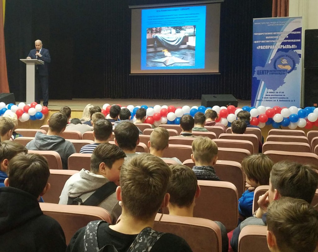 03.12.2018 года лекторской группой Центра "Расправь крылья!" - Иваном Головидом и Марией Серегиной на базе ГБУ КО «Областной молодежный центр» в рамках оказания социально-педагогических услуг для студентов СПОУ, в том числе из числа детей-сирот и детей, оставшихся без попечения родителей, проведено просветительское занятие "День неизвестного солдата".