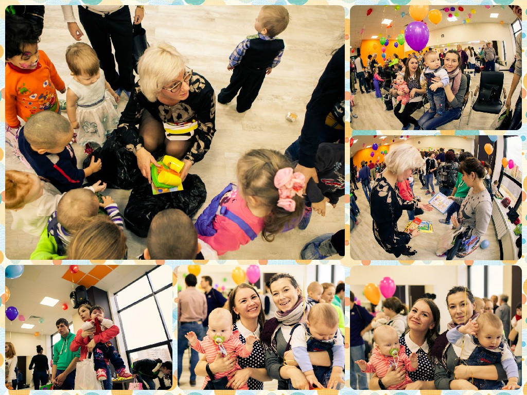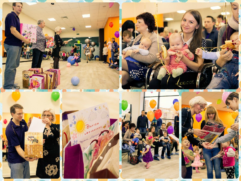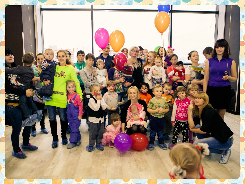 В нашем проекте «Молодая мама» уже стало традицией проводить день именинника. На это раз мы собрались в фитнес-центре «Атмосфера», чтобы поздравить с Днем рождения 23 маленьких девочек и мальчиков, детей участниц проекта, выпускниц детских домов и школ-интернатов, тех, кто родился осенью. К нам присоединились еще молодые мамы, которые хотели разделить с нами эту радость.