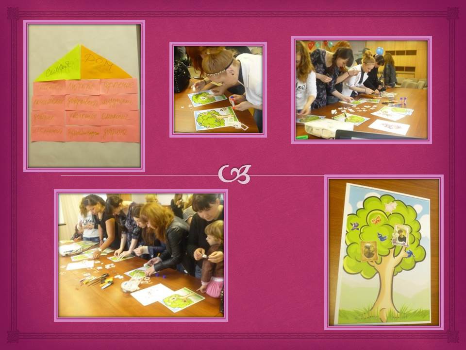 Перед началом мероприятия все сделали своеобразное дерево участников встречи. Каждая мама написала на шарике, что для них значит семья. Затем девушки стали архитекторами и построили свой Дом Мечты, из каких кирпичиков он должен состоять. В итоге получился замечательный Дом с кирпичиками "здоровье”, "любовь”, "понимание”, "улыбка”, «взаимовыручка», «мудрость» и т.д.