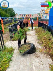 оказали посильную помощь детскому дошкольному учреждению «Анютины глазки». Приняли участие в уборке территории детского сада. Ребята потрудились на славу. Работы хватило всем!