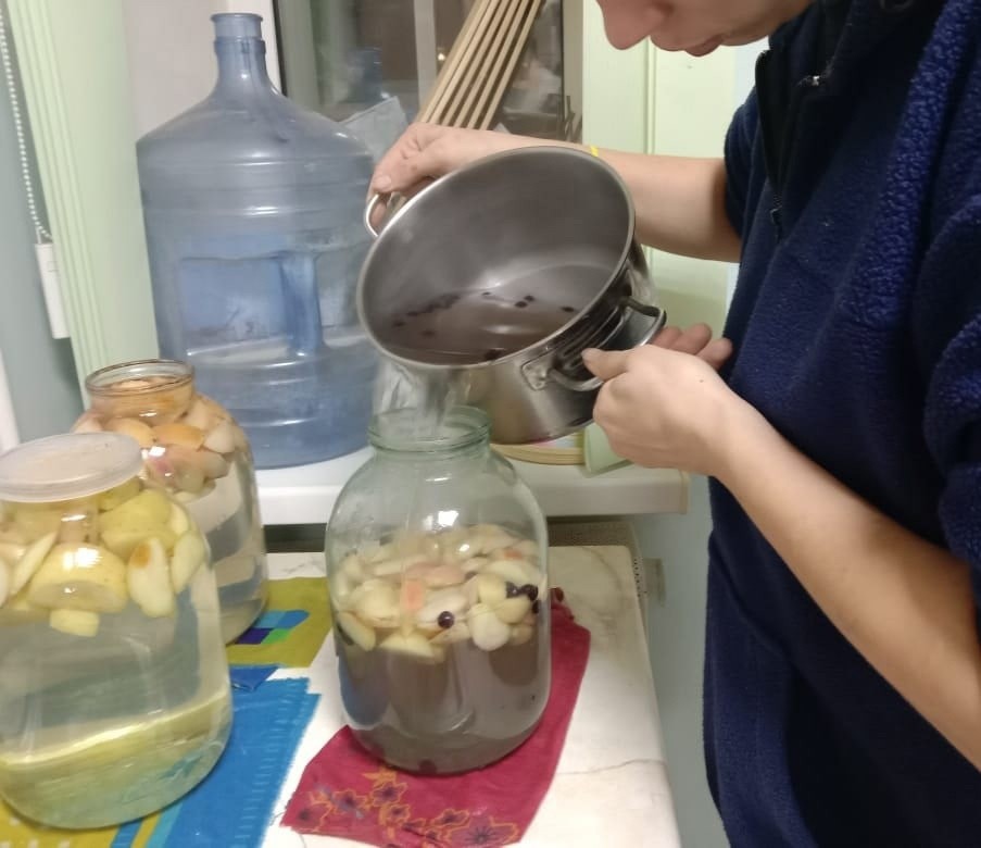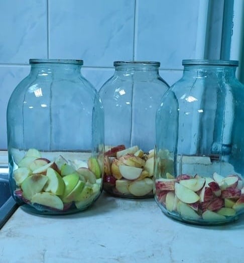Сегодня наше утро началось с заготовки компота из яблок на зиму.