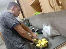 3. Пока варится мясо, мы наряжаем картофель мелкими кубиками.