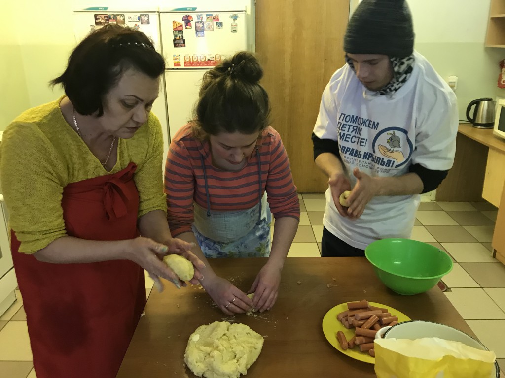 Что для этого нужно? Картофель, мука, соль, яйцо, сода, сосиски и можно приглашать гостей! Молодежь с огромным удовольствием учиться готовить. Мы общаемся и делимся опытом! Ждем вас на наших мастер-классах!